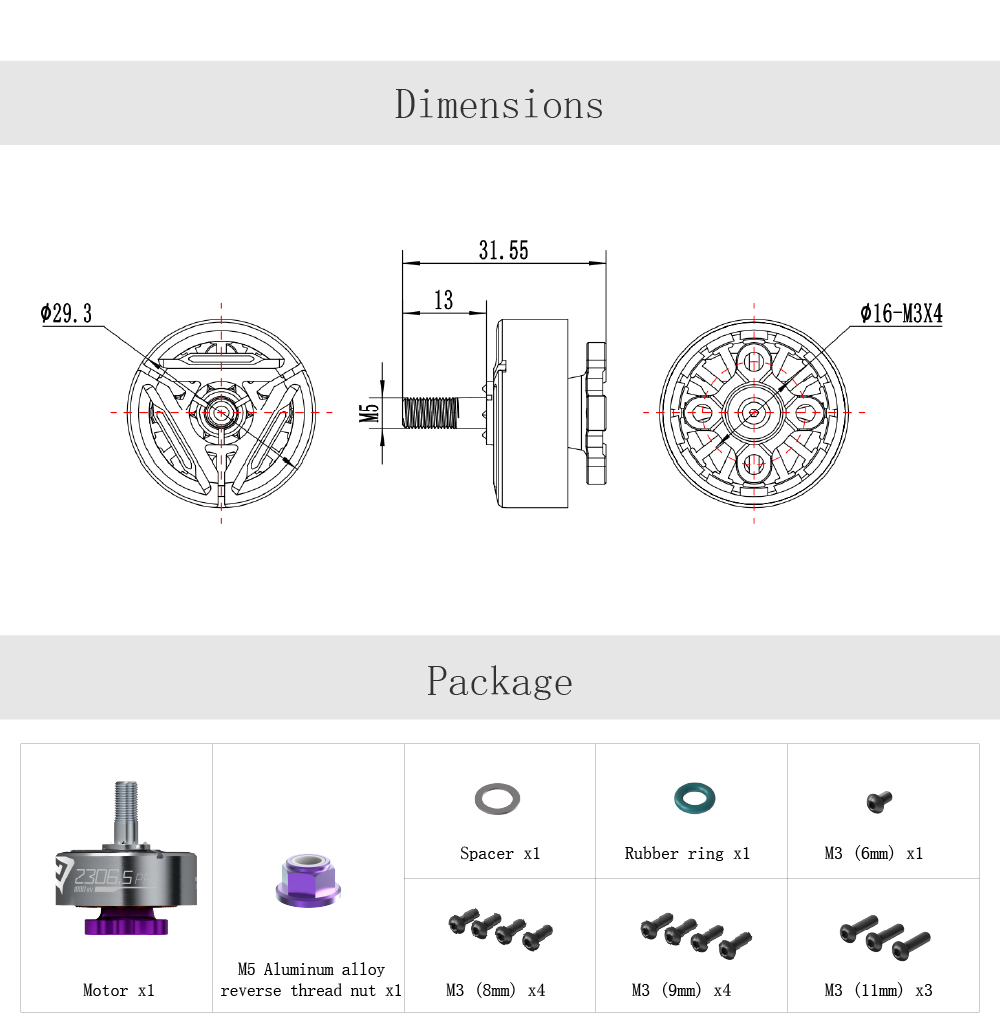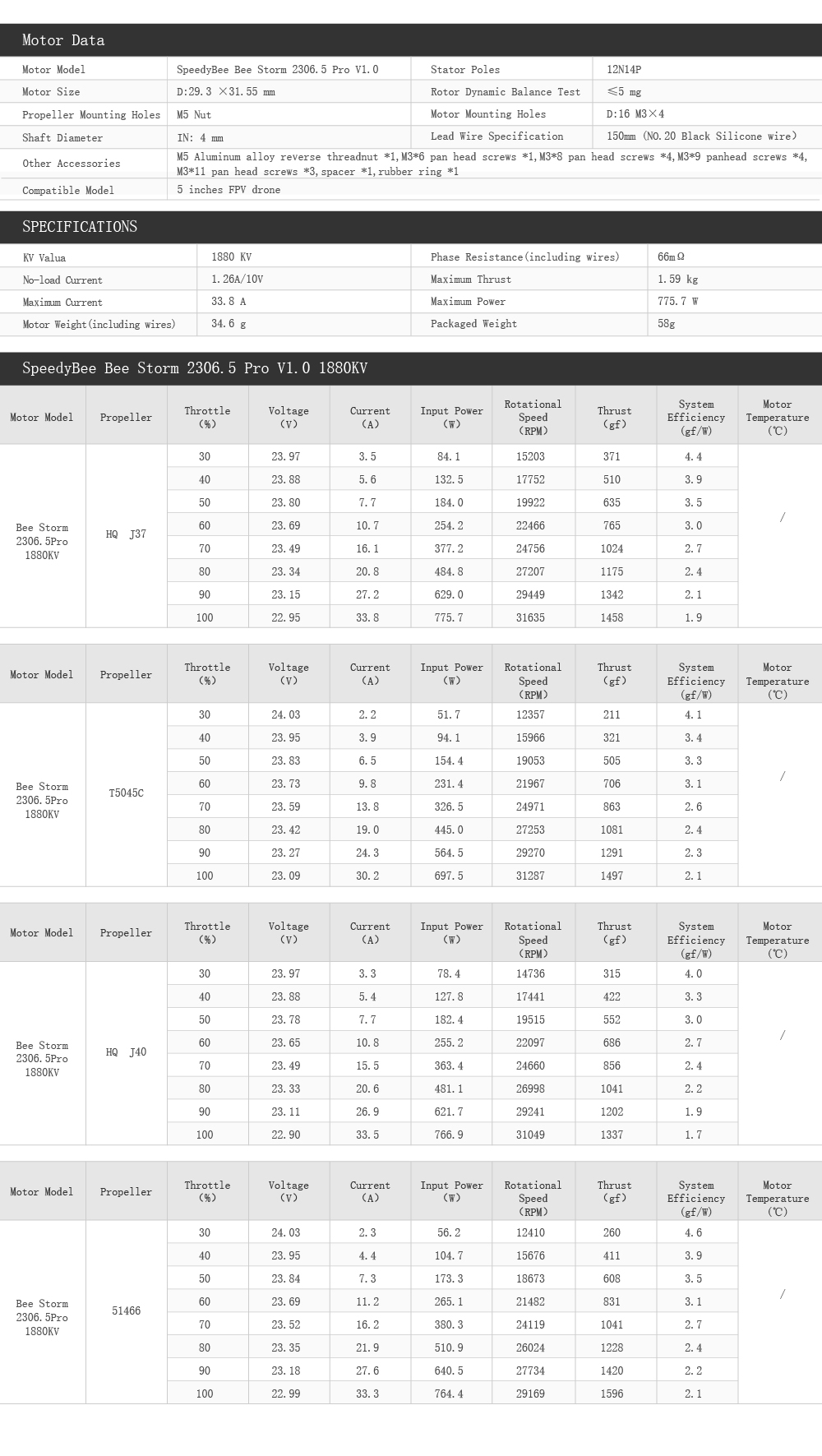 SpeedyBee BeeStorm 2306.5 PRO-1880KV Motor Mario5 5 inch FPV